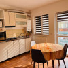 Locuința este complet mobilată și utilată modern, are centrală proprie, aer condiționat, mașină de spălat, combină frigorifică, plită și cuptor pe gaz, hotă, cuptor cu microunde.