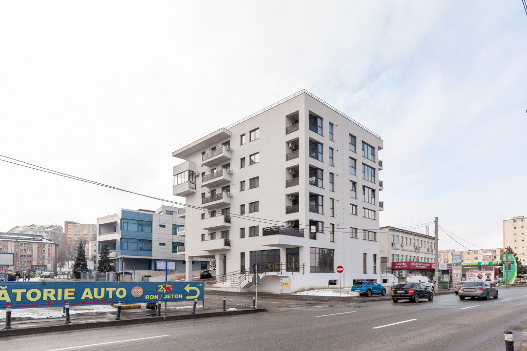 Este situat in zona Fratii Golesti – McDonald’s Gara, intr-un bloc nou (2025) cu lift si loc de parcare inclus.