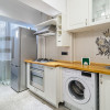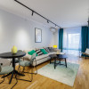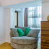 Amenajat in stil scandinav, cu tonuri neutre, accente de verde si turcoaz si mult lemn, spatiul este luminos si aerisit. Livingul te invita efectiv sa te asezi pe canapea, sa iti pui o cafea pe masuta de cafea si sa lasi lumina sa intre prin draperiile ample. Ai zona de dining, televizor, aer conditionat si suficient loc pentru serile cu prietenii sau pentru un maraton de seriale.