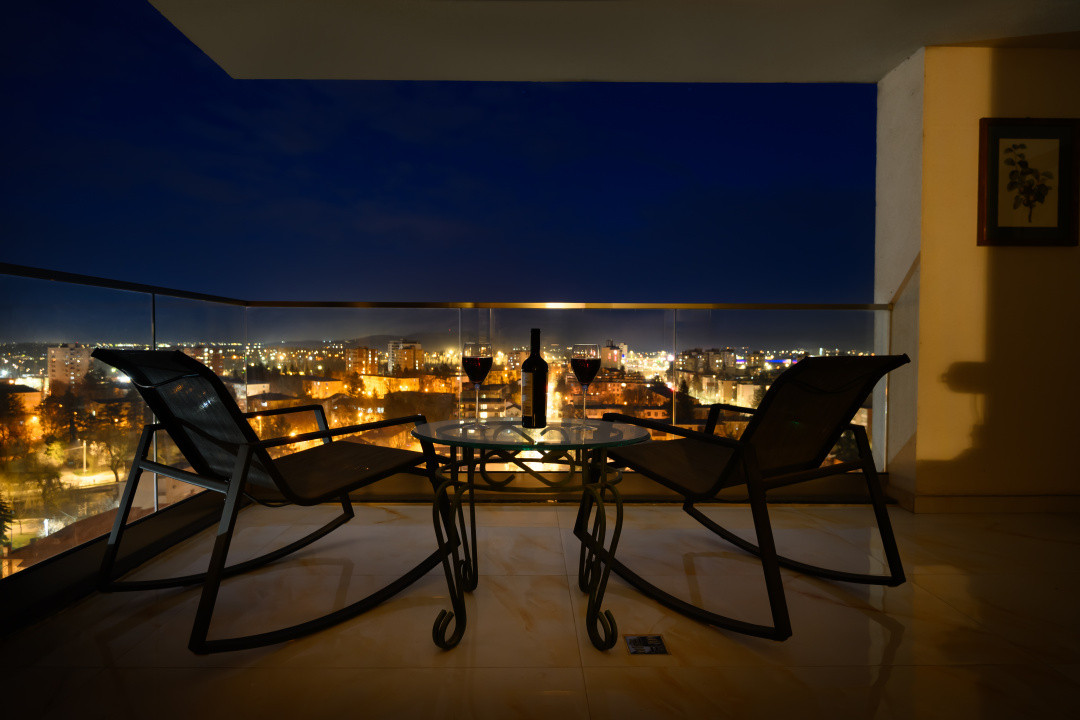 Cele două terase oferă un loc perfect pentru relaxare - se poate admira panorama amplă si spectaculoasa a orașului, dar si crestele muntilor din departare.