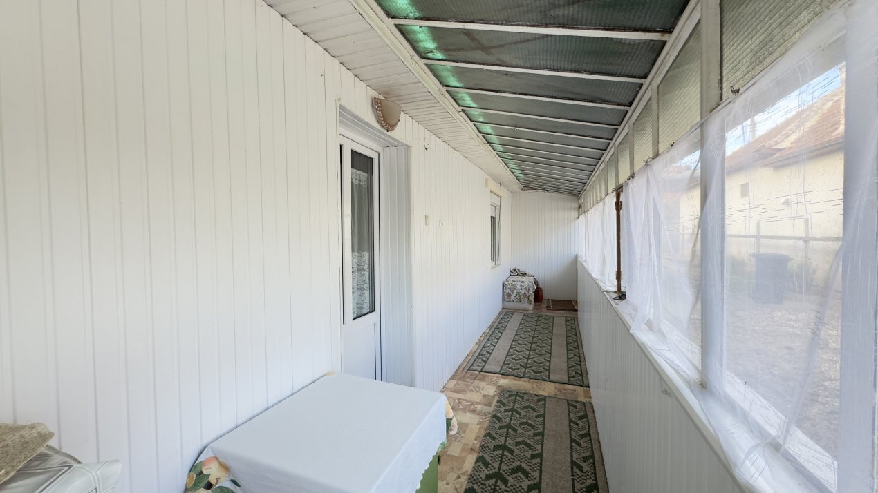 Casa cu fundația din cărămidă, pereții din vaioagă, acoperiș cu țiglă ceramică a fost construită in anul 1970 și este compusă din 3 camere, 1 bucătărie, 1 terasă inchisă, 1 anexă cu beci de aproximativ 8 mp și este dotată cu geamuri din PVC cu termopan și lemn cu rulouri PVC, ușă intrare PVC, parchet lamelar, incălzire cu sobe de teracotă, inălțimea tavanului este de 2 ml, casa nu este dotată cu grup sanitar.