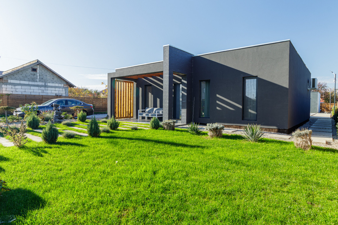 • Curte amenajată superb, cu gazon, vegetație și zonă verde