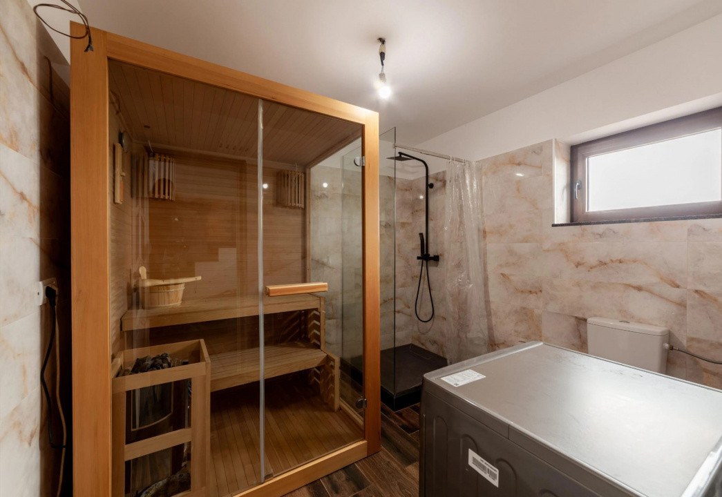Parter : living generos cu bucatarie open-space, luminos si primitor, baie cu sauna proprie – un plus real de confort.Terasa spatioasa, ideala pentru relaxare, hobby sau inchidere ulterioara.