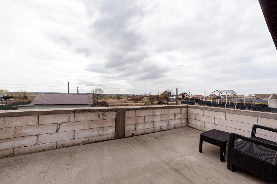 Etaj : 2 dormitoare bine compartimentate, unul cu balcon, celalalt cu terasa generoasa neacoperita si o baie baie spatioasa.