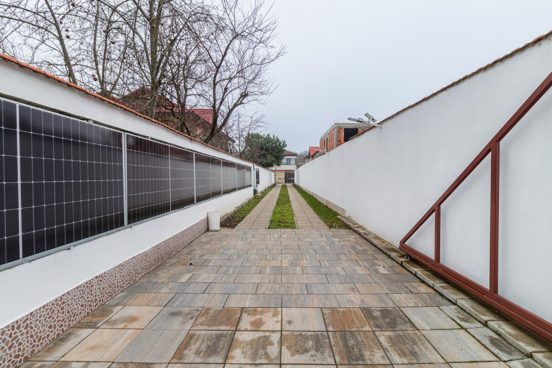 Accesul este bine gândit: la proprietate se intră prin poartă automată, iar zona este una liniștită, cu doar doi vecini în proximitate.