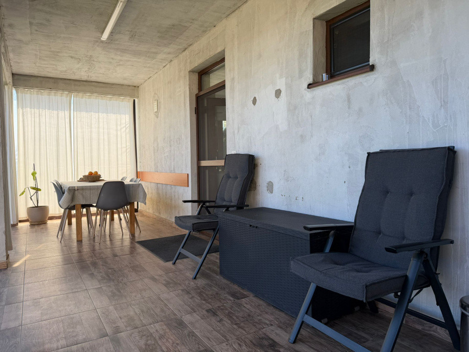 Dispune de 3 dormitoare, 2 băi, o bucătărie închisă cu sticlă și cu ieșire pe terasă unde există și camera tehnică.