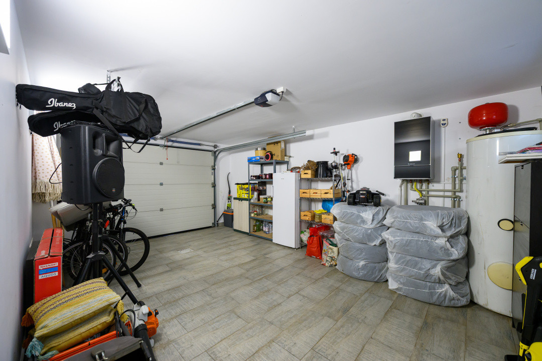 - La nivelul parterului se află și garajul închis, cu acces direct în interior.