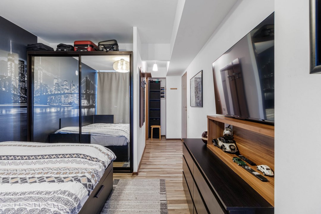 Etaj 2 – zona de locuit: living luminos, două dormitoare, bucătărie închisă, dressing, băi complet utilate și o terasă panoramică de peste 50 mp, perfectă pentru relaxare sau evenimente private