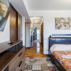 Etaj 2 – zona de locuit: living luminos, două dormitoare, bucătărie închisă, dressing, băi complet utilate și o terasă panoramică de peste 50 mp, perfectă pentru relaxare sau evenimente private