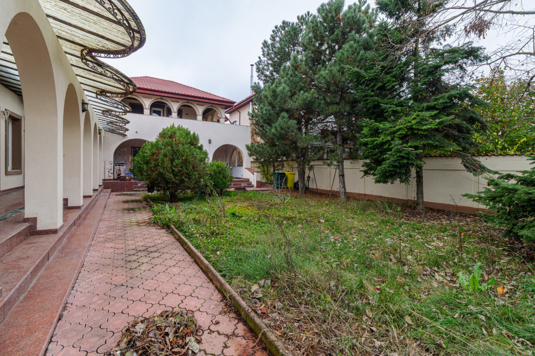 Proprietatea dispune de un teren generos de 1000 mp, cu deschidere largă, grădină matură și o alee centrală care oferă o intrare elegantă. Curtea permite amenajare liberă, fie pentru relaxare, fie pentru spațiu de joacă, bucătărie exterioară sau piscină.