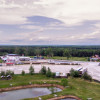 undeva, pescarii își petrec diminețile la malul lacului, iar în apropiere, oaspeții motelului își savurează cafeaua privind către pădure.