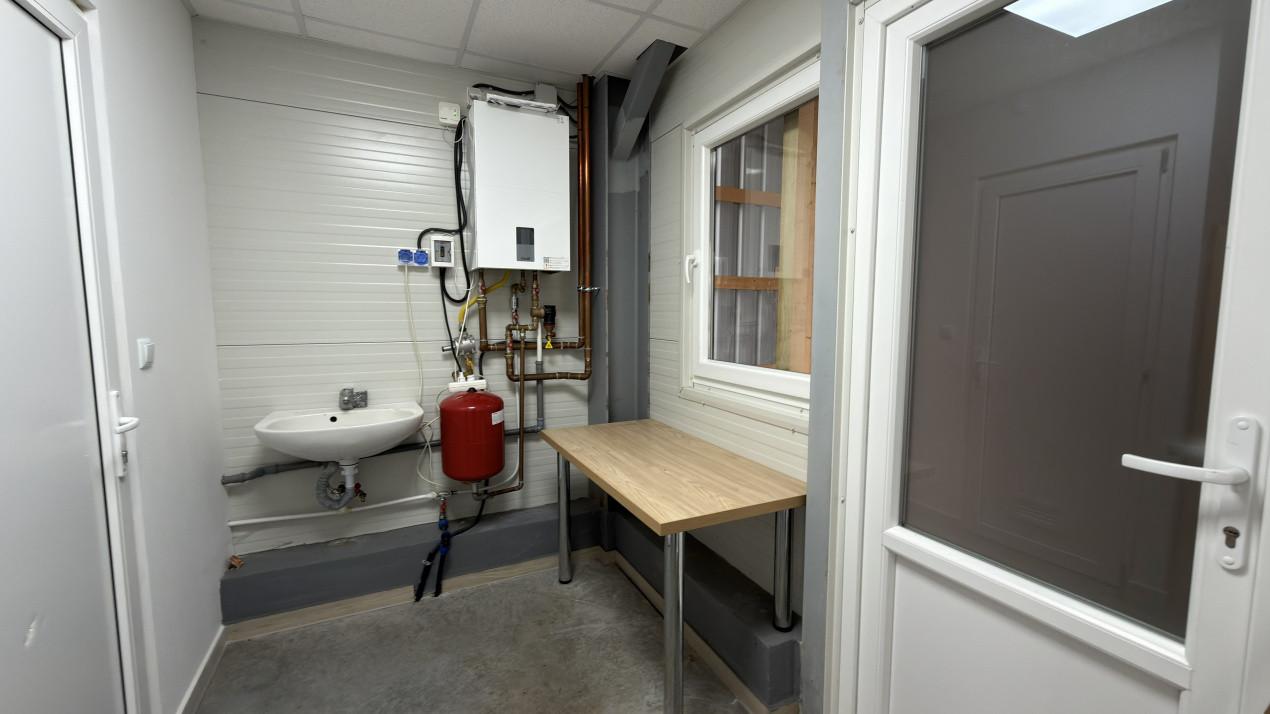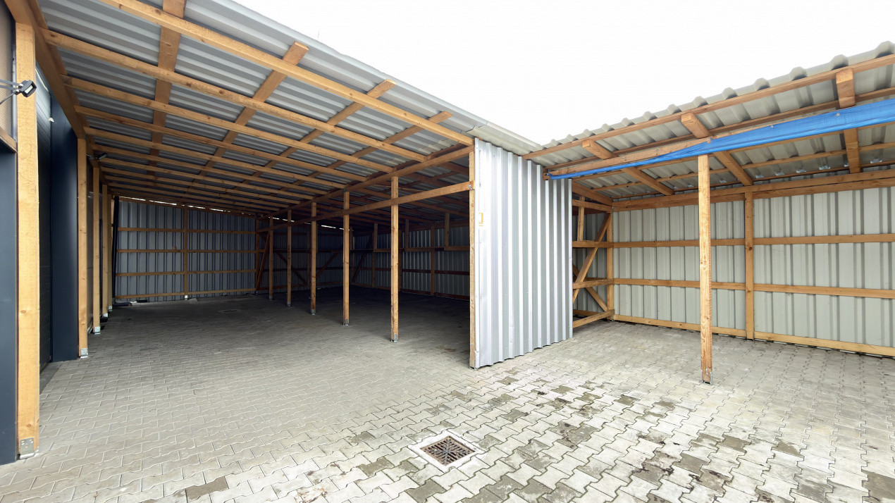 Clădirea este compusă din o incăpere open space de 296 mp utili cu posibilitatea de reamenajare interioară dacă este cazul, 1 grup sanitar cu vestiar, curte interioară de aproximativ 170 mp cu acces pietonal și auto prin lateralul clădirii pentru aprovizionare sau alte activități, având in curtea interioară și un șopron de aproximativ 77 mp pentru depozitare cu acces direct in clădire cu poartă secțională acționată electric de 3 m lățime si 3,45 m inălțime.