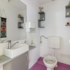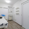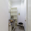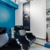 În partea stângă se află două camere: una dotată cu pat pentru epilare și alta amenajată pentru spălat capul, cu două dușuri special instalate, plus un spațiu dedicat pentru mașina de spălat.