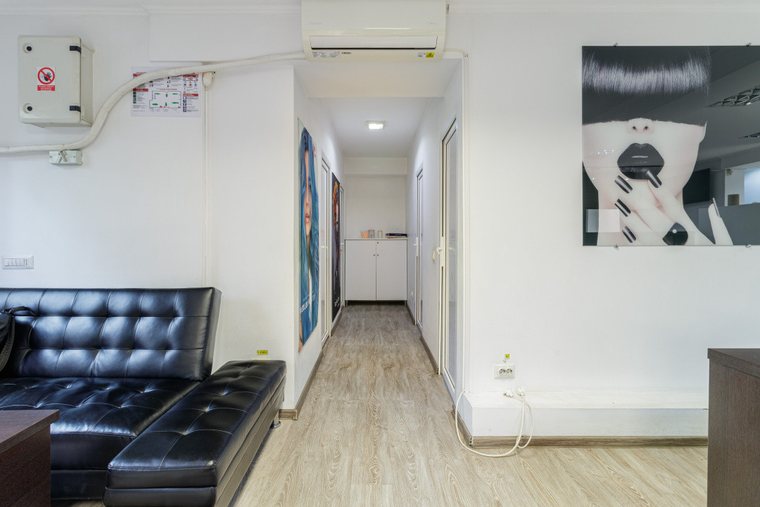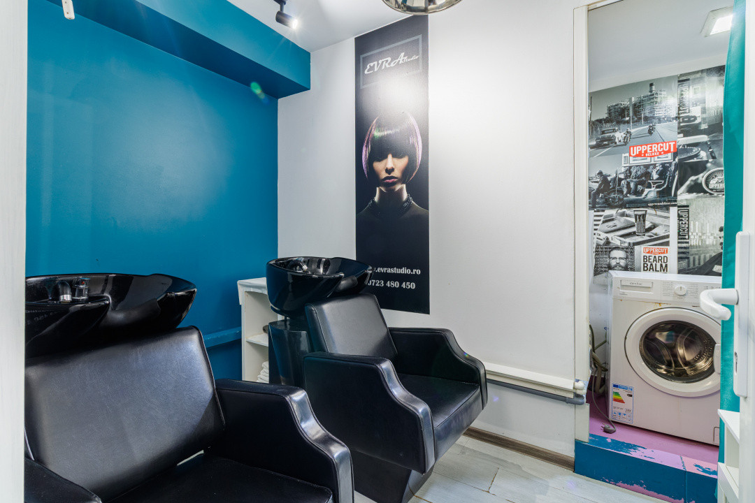 Cu o suprafață totală de 77 mp, spațiul este în prezent complet mobilat și utilat pentru activități de frizerie, coafor sau salon de înfrumusețare.