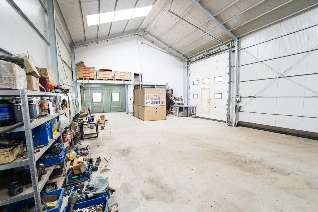 Spatiul administrativ premium, dispus pe parter si etaj, include birou, vestiar, receptie, hol, 2 grupuri sanitare si are o suprafata utila de 48,94 mp, iar spatiul de depozitare ocupa 174,50 mp. Hala dispune de trei intrari, inaltime de 5 m la streasina si 6,5 m la coama si ofera o suprafata utila de 223,44 mp.