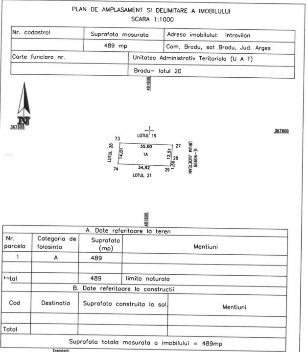 Va propunem spre achizitie un superb teren intravilan de 489 mp in Bradu , la aproximativ 5 minute de Pitesti , intr-o zona in plina dezvoltare cu deschidere de 12,5 m la Drumul Judetean Pitesti- Bradu . Terenul este complet plan si este ideal atat pentru constructia unei case cat si pentru dezvoltarea unei afaceri datorita pozitionarii lui la drumul principal. La limita proprietatii avem apa, gaze, curent electric si canalizare.. Echipa noastra va poate consilia de la vizionare, obtinere credit, inchidere tranzactie. Toate acestea cu comision zero pentru cumparator. Va asteptam cu drag la vizionare!